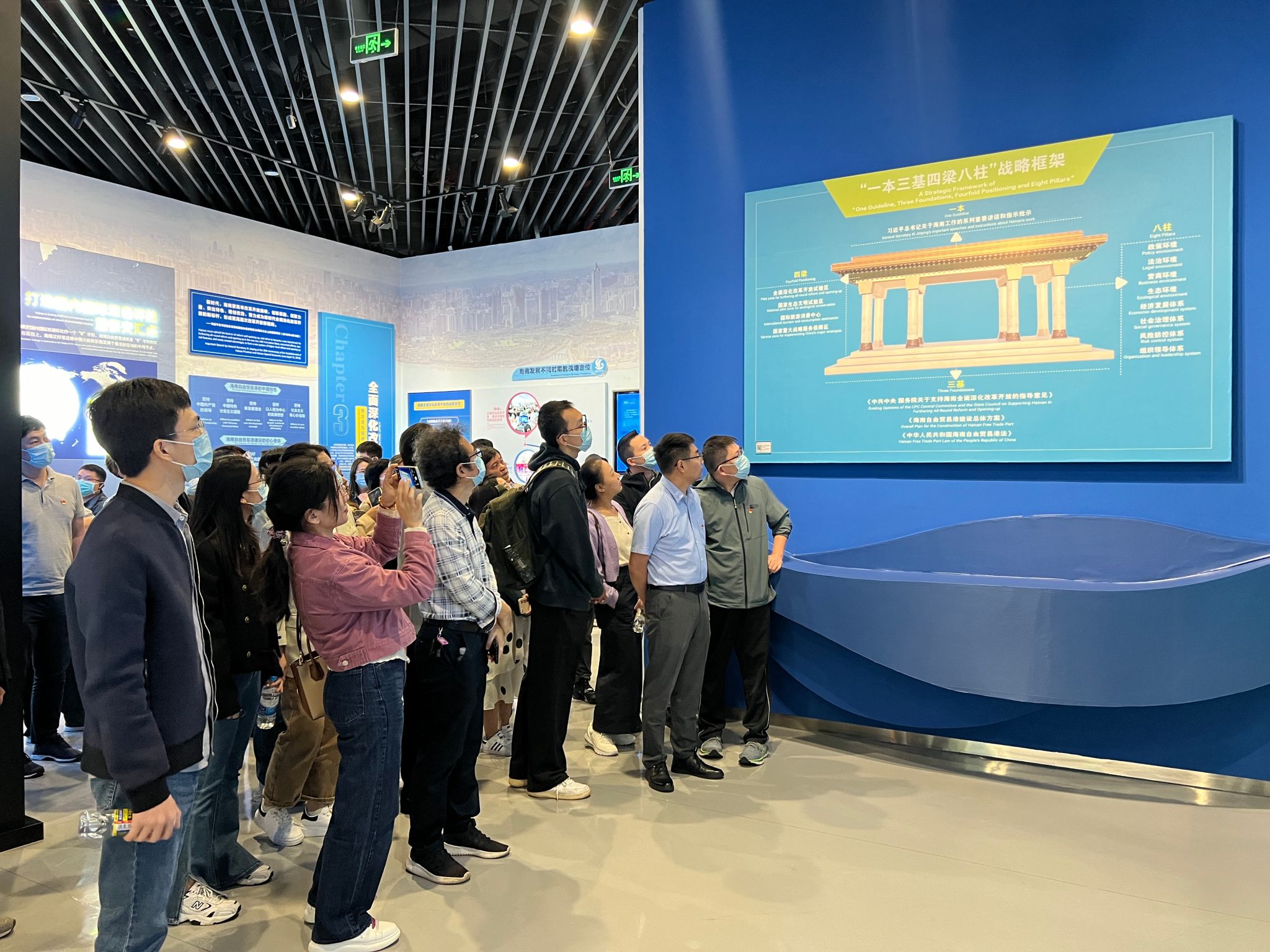 国际贸易与经济系教工党支部表示参观海南省史志馆后更加读懂海南自贸港的现在进行时与将来完成时。一楼场馆展示了海南全面深化改革开放与中国特色自由贸易港建设的成果,数字化的显示屏与实时更新的e登记实况,充分展现了海南建设的现代化与营商环境的公开透明,大树图谱对于海南自贸港现代产业体系的描绘也让大家更清晰直观地感受到海南经济的未来发展方向,真切感受到海南自贸港建设蹄疾步稳、蓬勃兴起。