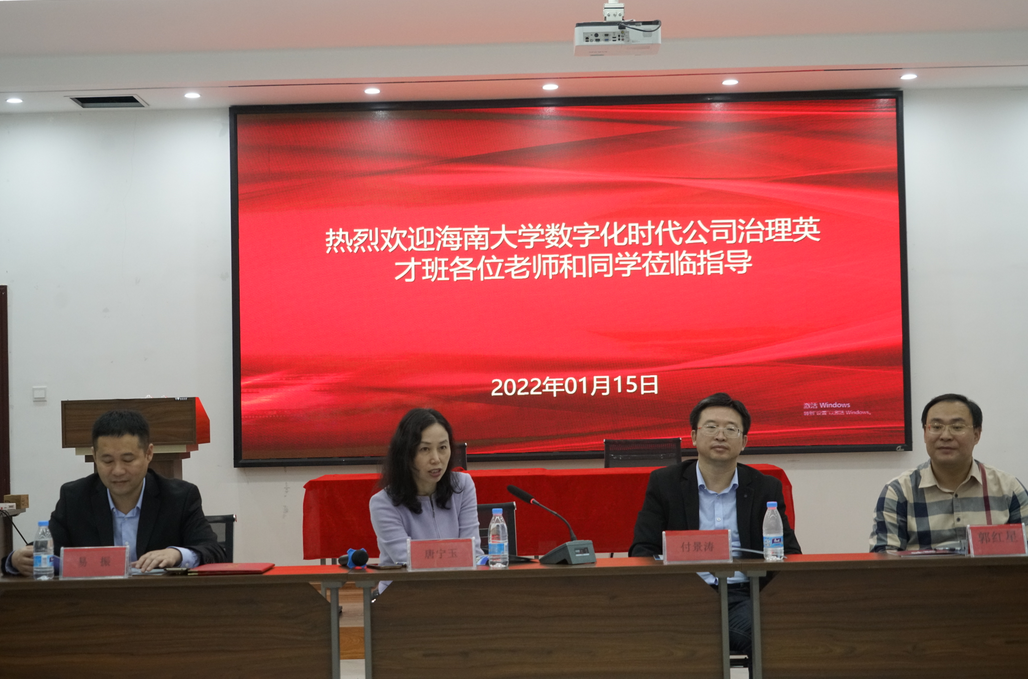 2022年1月15日下午,海南大学管理学院院长唐宁玉带队,学院党委副书记易振、副院长付景涛,郭琦、陈一华、邵云伟老师,数字化时代公司治理英才班学员,海大20级、21级MBA学员二十余人,参观访问海南华研胶原科技股份有限公司。