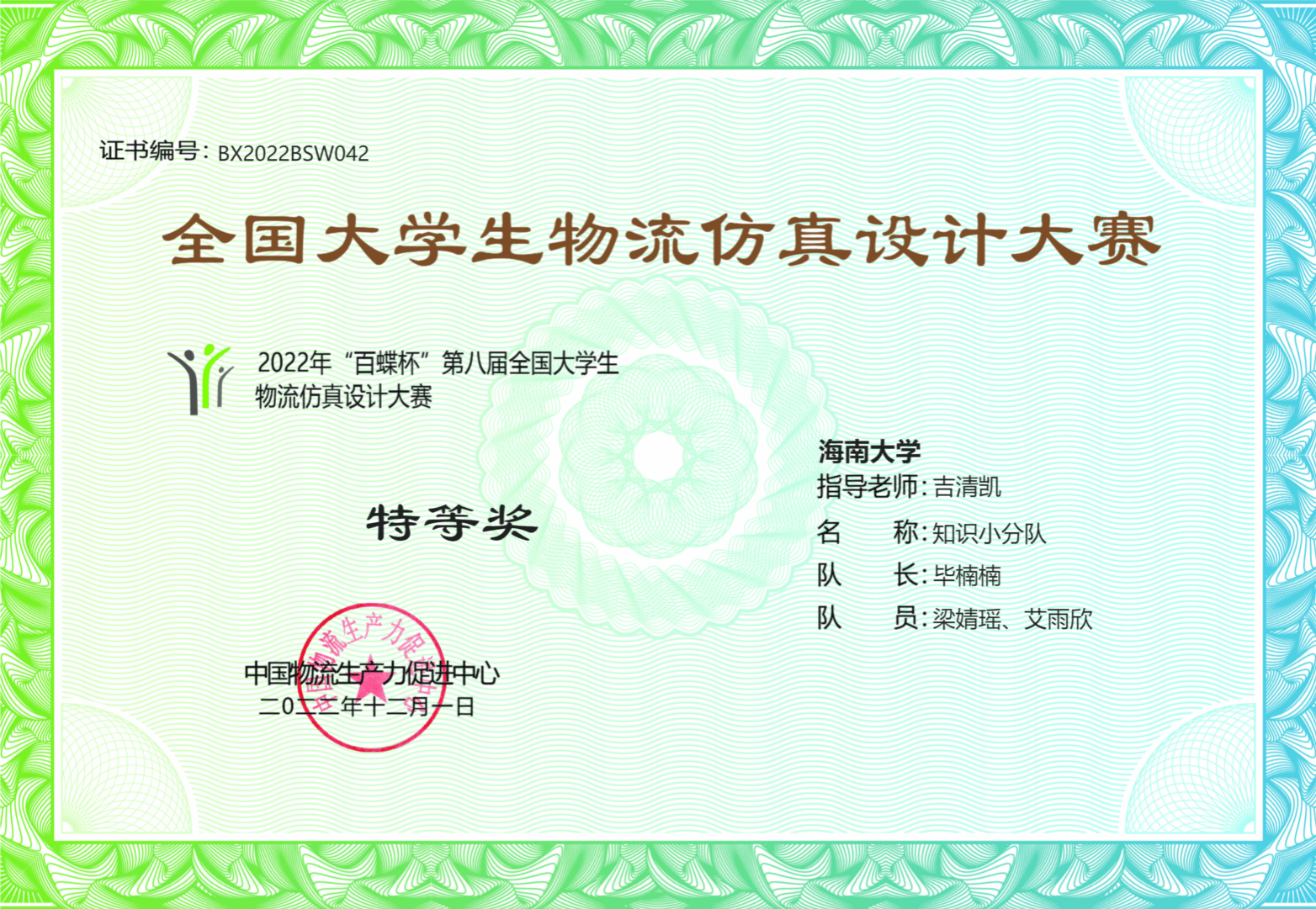 本专业拥有海南省精品在线开放课程《程序设计基础》、海南省线下一流课程《数据结构》、海南大学“金课”课程《供应链管理》与《管理信息系统》,以及双语课程《运营管理》。