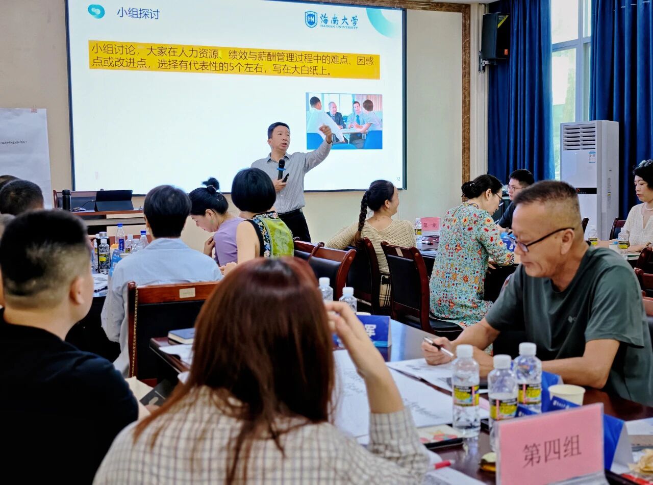 在海南自贸港建设如火如荼的背景下,企业对高效管理体系的需求愈发迫切。2025年8月23日-24日,海南大学自贸港工商管理领航班特邀业界大咖杨栋导师,以“战略性人力资源管理与激励性薪酬体系设计”为主题开启专题课程。本次课程创新采用8组分组学习模式,让知识传递更高效、互动交流更深入,为学员们解锁人力资源管理核心密码的同时,碰撞出更多实战思路。