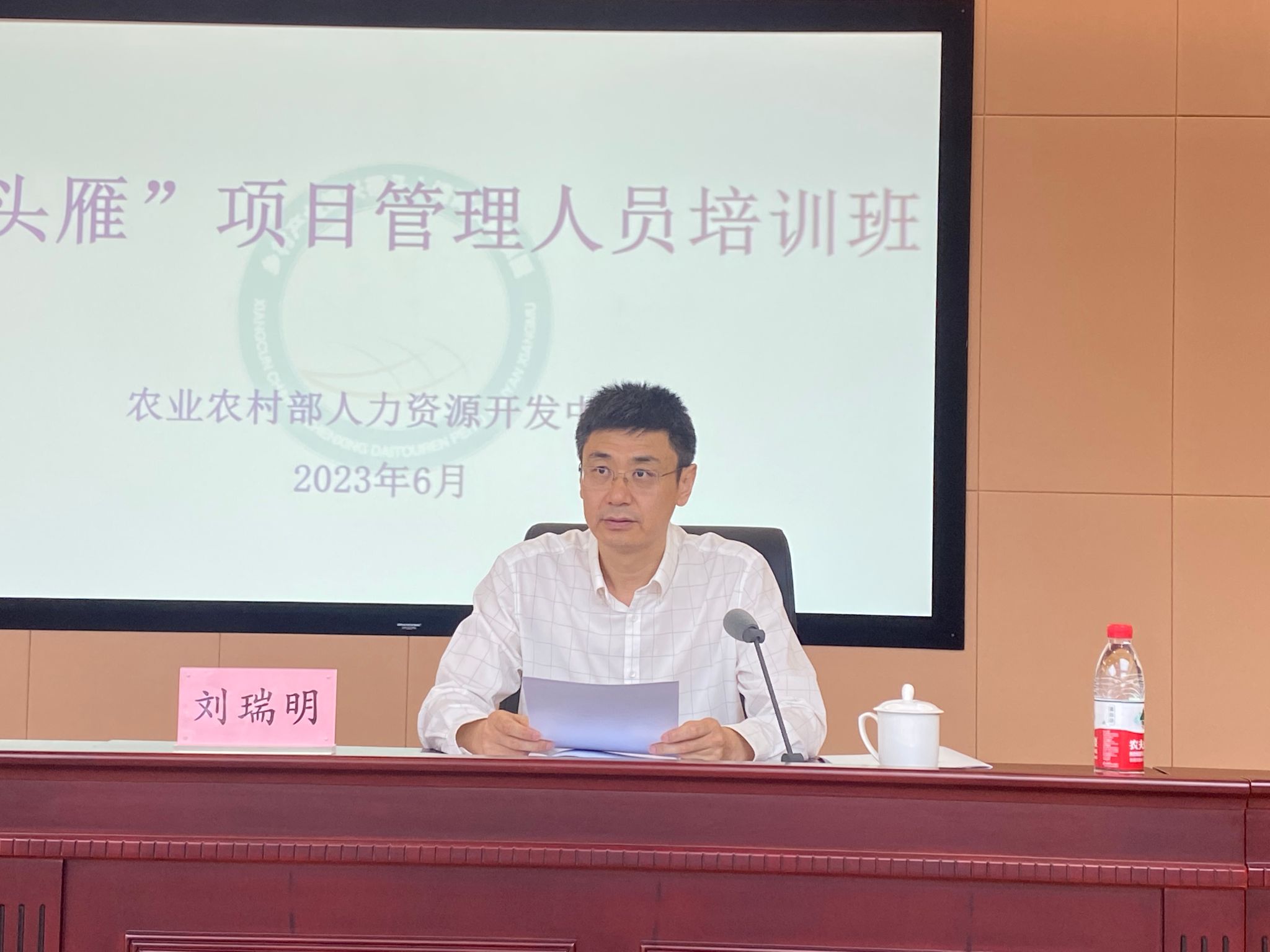 2023年6月12日-14日,乡村产业振兴带头人培育“头雁”项目管理人员培训班在北京举行,海南大学管理学院作为“头雁”培育单位参会。会上,农业农村部人力资源开发中心党委书记刘瑞明对海南大学将培育“头雁”融入海南大学MBA培养体系表示认可,并作为优秀经验进行分享。