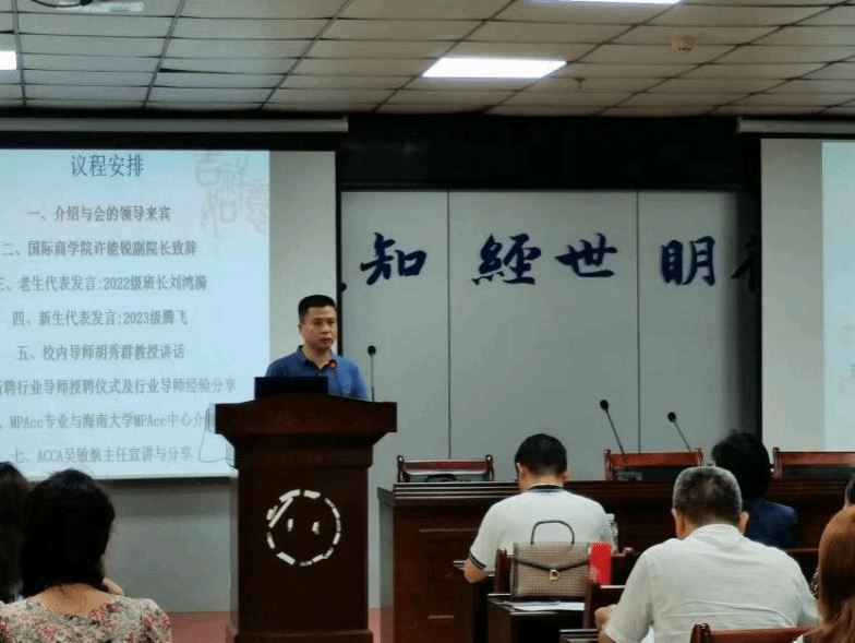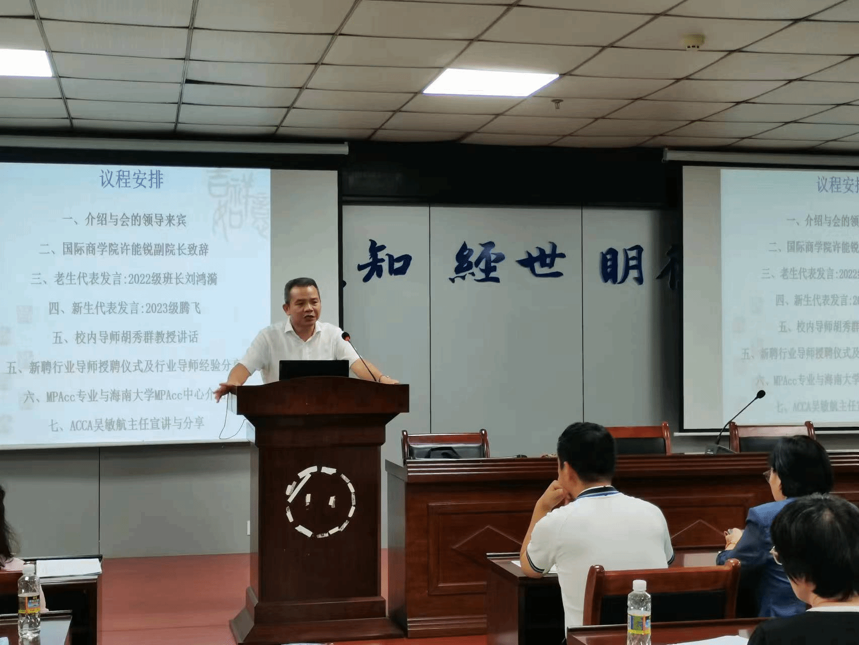 会上,伟德bv1946官网副院长许能锐教授对2023级会计硕士全体新生表示热烈的欢迎与诚挚的祝贺,并简要介绍了伟德bv1946官网的历史沿革与学科特色,提出学院“为海南自贸港建设培养人才,为中国特色社会主义贡献力量”的美好愿景。