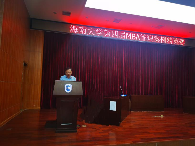 海南大学管理学院党委书记邢谷川代表学院讲话,他回顾了海南大学MBA办学历程,介绍了海南大学管理学院办学情况,阐述了案例教学和案例比赛对于人才培养的重要性。管理学院副院长付景涛教授主持了开幕式,副院长童泽林教授出席了开幕式。