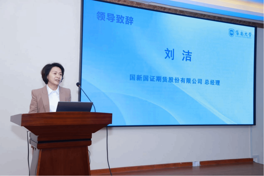 国新国证期货有限责任公司总经理刘洁在致辞中表示,国新国证非常荣幸能够加入海南自由贸易港期货人才培养基地2024年度项目。她希望与基地合建各方同步发力,共同开创海南本土期货人才培养基地新局面,为自贸港人才培养贡献企业力量。
