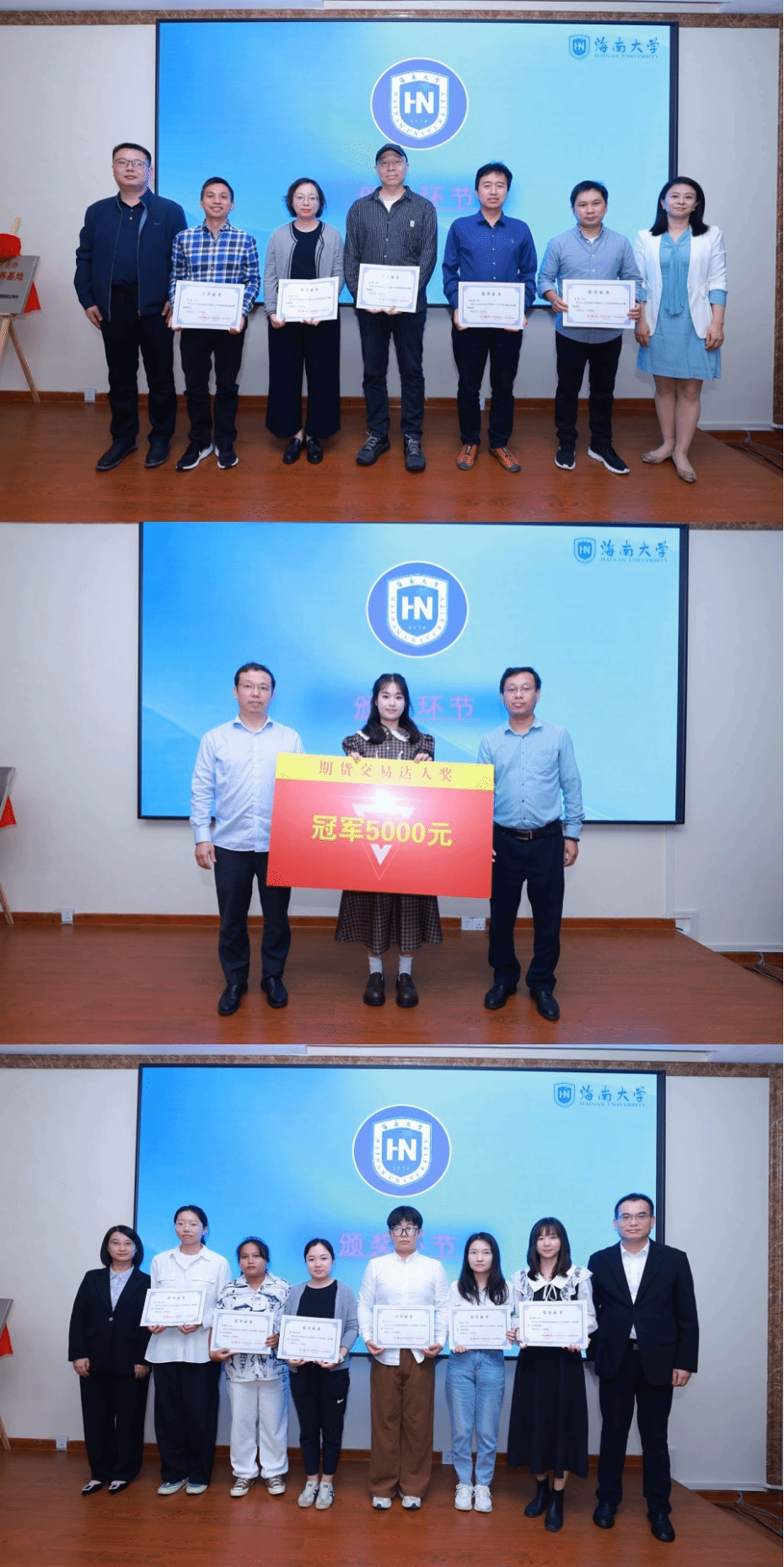 参会领导在现场为第二期人才基地项目的获奖教师和学生宣读表彰文件并颁发获奖证书,本次金元期货为我院专硕学生资助奖学金共计4.5万元。
