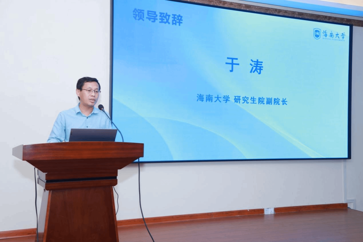 海南大学研究生院副院长于涛致辞中对海南自由贸易港期货人才培养基地2023年度项目的顺利完成表示热烈祝贺,对企业与高校双向赋能,多元主体协同共商共建人才基地的立体培养模式给予充分的肯定,也对期货人才培养基地2024年度项目启动表示热烈的祝贺。