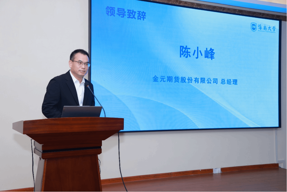 金元期货股份有限公司总经理陈小峰在致辞中表示金元期货作为海南本土期货公司,将支持海南自由贸易港建设,服务国家金融战略,这是义不容辞的社会责任。金元期货未来希望继续深化与海南大学的合作,协同高校不断拓宽期货专业人才的培养面,共同打造“产教”深度融合的实践教学基地,实现“课岗对接、课证融合、课赛融通”的良性循环和互动。