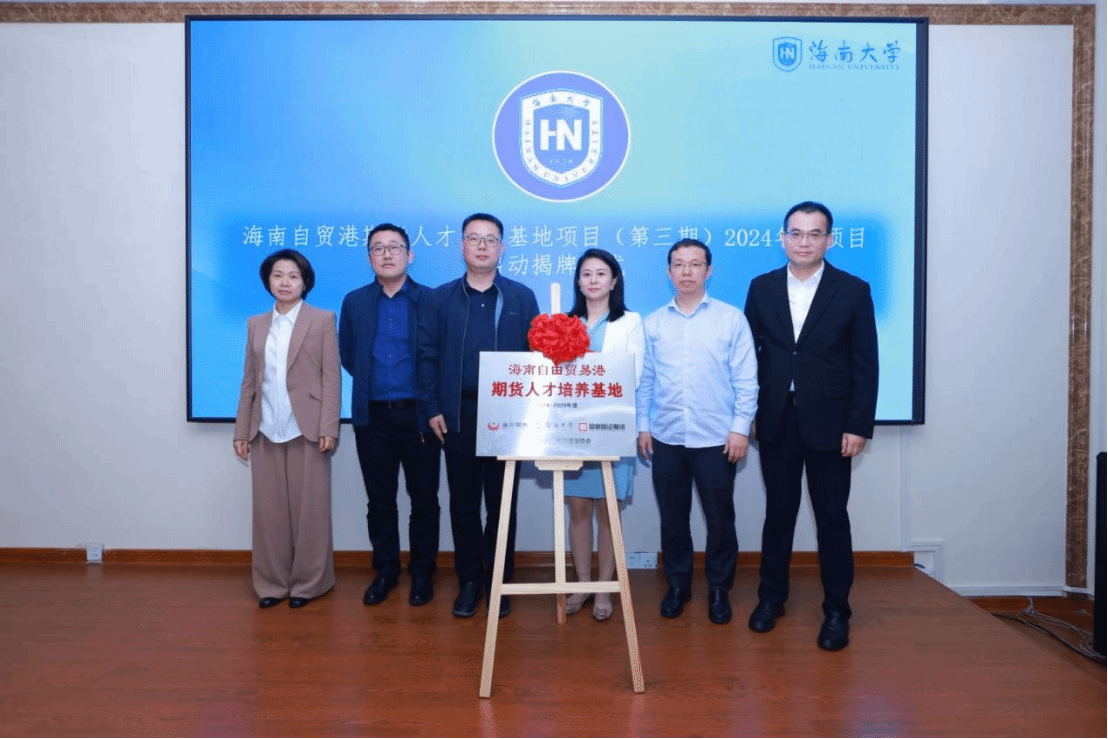 基地共建单位领导共同为海南自由贸易港期货人才培养基地(第三期)项目揭牌。