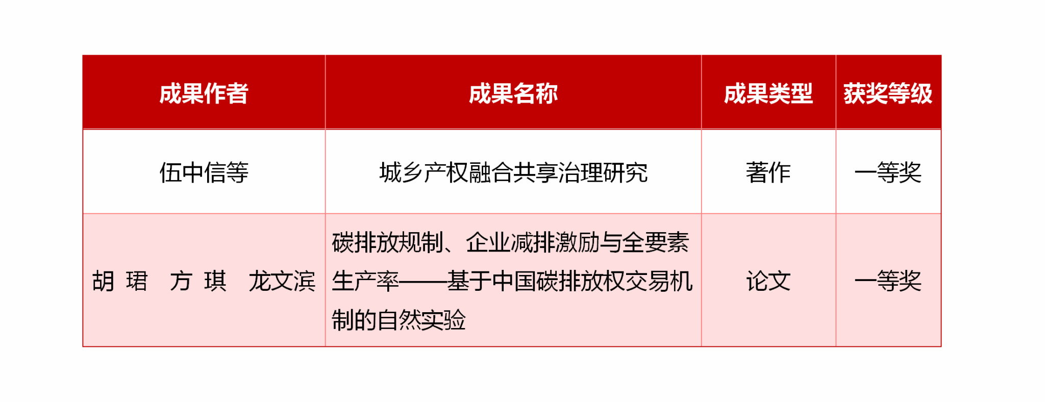 伍中信等完成的《城乡产权融合共享治理研究》(著作)荣获一等奖;